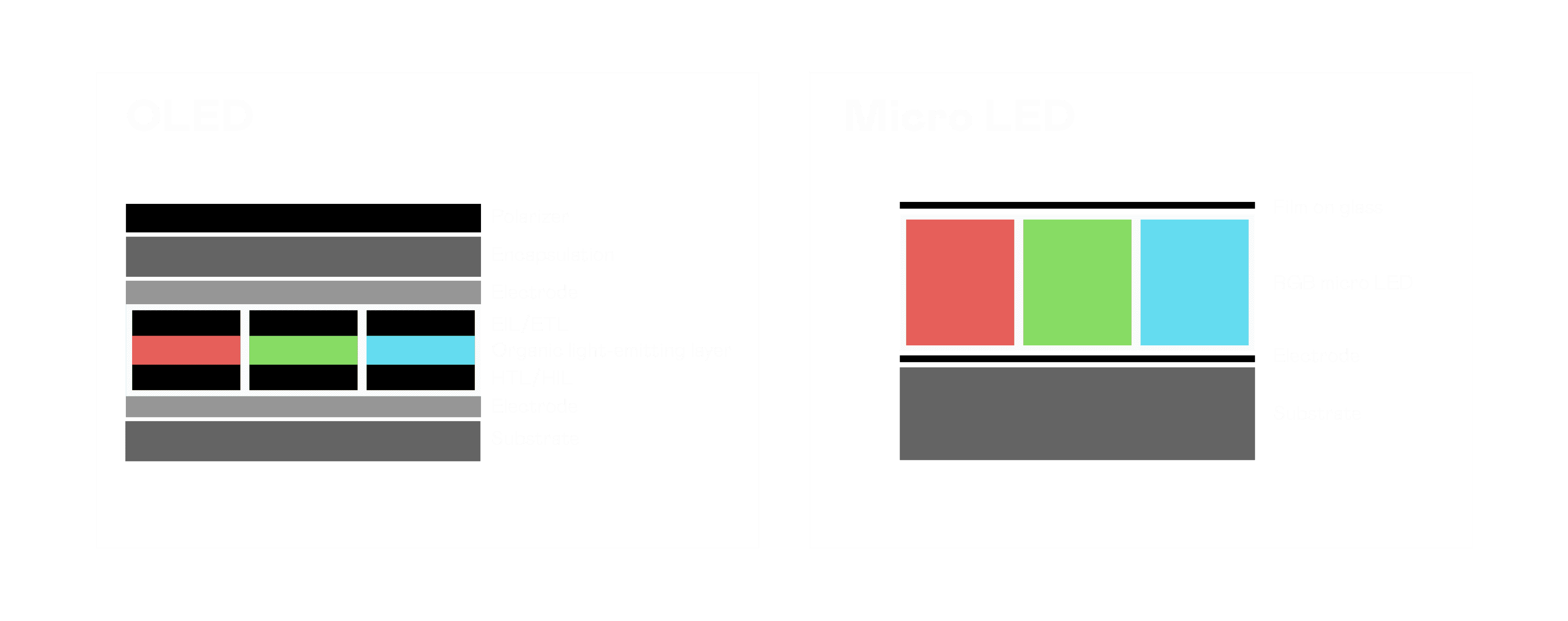 以 LED 做为显示画素,,,,可让 LED 的发光效率发挥到极致,,从而让显示器具备优异的亮度表现,,,,不论是在户外或室内,,均具备出众的显示效果。。。同时,,,与使用有机材料的 OLED 相比,,LED 具备更稳定、、、、寿命更长的特性,,,不仅不会有画面烙印问题,,,而且更不容易出现故障、、、坏点。。。